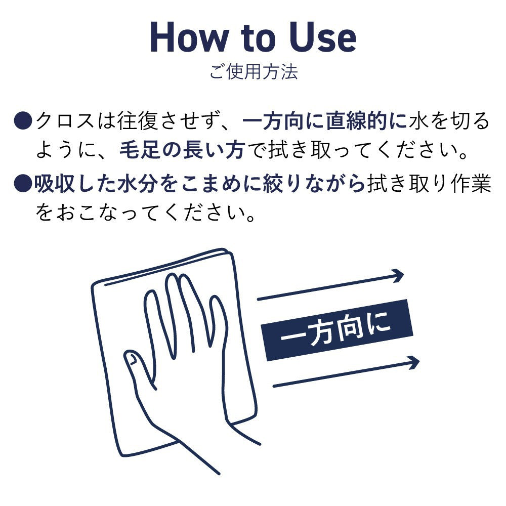 汚れと水分を同時にまとめてキャッチし、拭き上げ時間を大幅に短縮します。