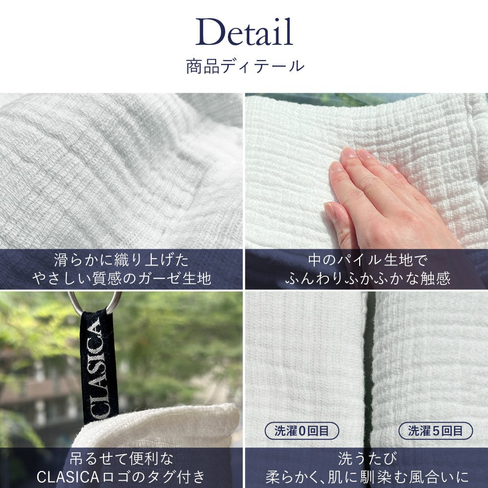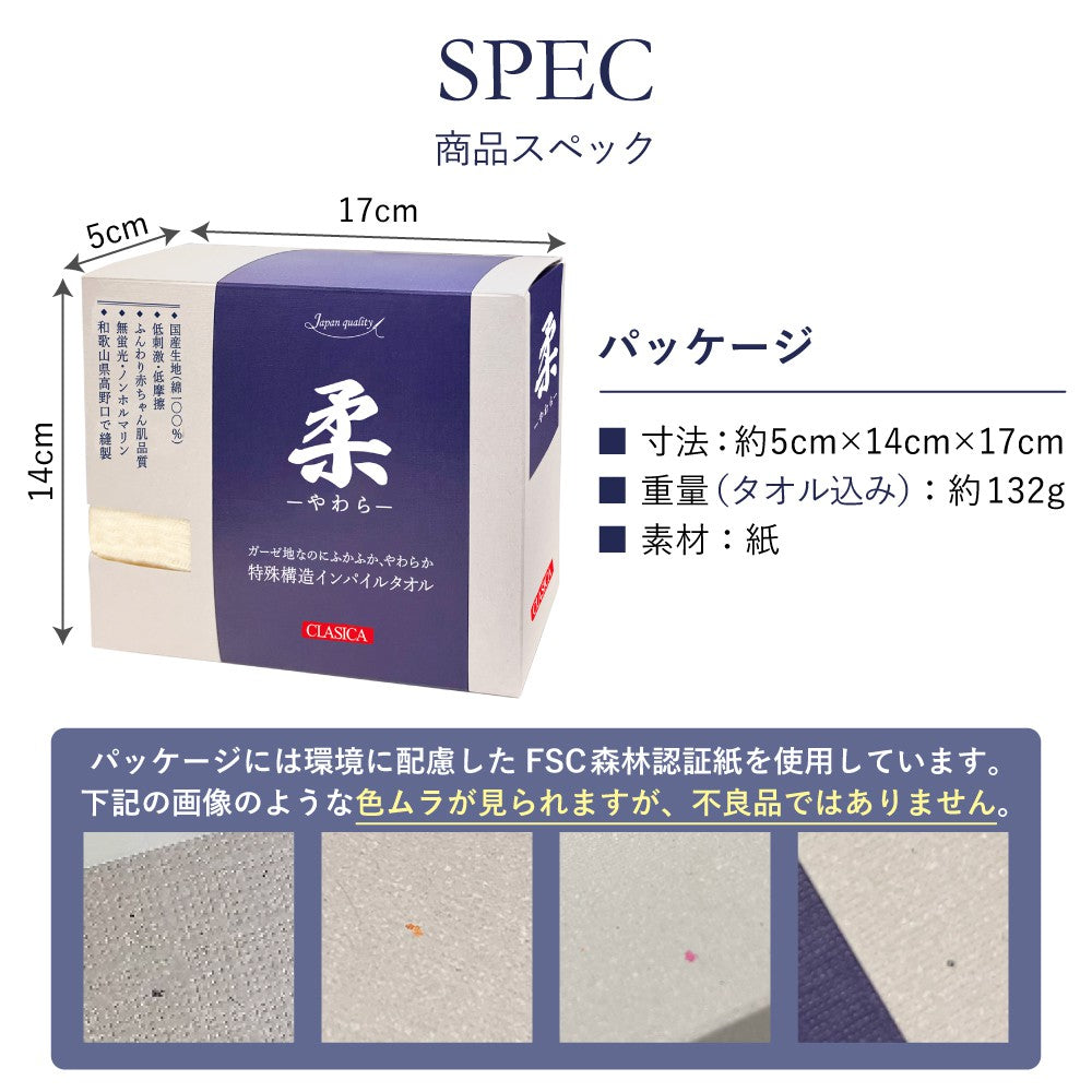ガーゼ生地なのにふかふか柔らかい、CLASICAオリジナル国産インパイルフェイスタオル『柔』